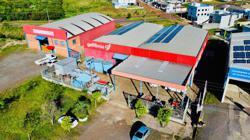 Pavilhão comercial com 1.200m² de área construída, localizado em terreno de 2.000m², com frente direta para a BR-153, no quilômetro 46, a apenas 300 metros do trevo de acesso ao bairro Atlântico.